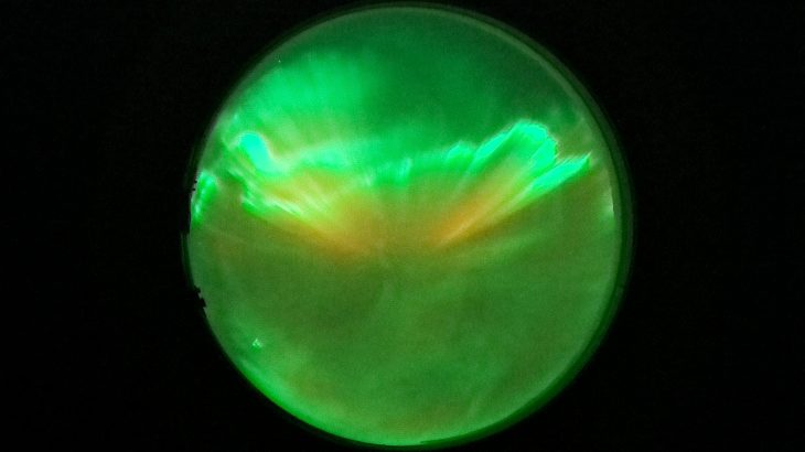 特殊フィルタをセットしたSE-SB8M-IMX585Qがアラスカにセットされています。円周魚眼レンズで全天を埋め尽くすオーロラが撮影できました。